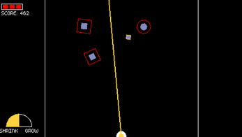 In Laser Calibration you take control of a powerful laser and you have to scale the incoming shapes, by changing between the two modes of the laser: either Shrink or Grow mode. Each shape has a target scale that it has to reach, and this is shown by the outline shape following it.